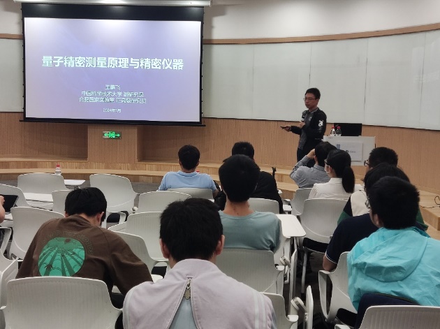 荣星教授以实验室学生的实际案例为依托,对自己在自旋体系方面的前沿研究进行了详细介绍。其内容涵盖了磁共振谱仪的研发,以及量子物理和量子精密测量的最新研究进展。为了让同学们更深入地理解自旋量子技术的重要意义,荣教授回顾了自己研究生时期在导师杜江峰院士指导下的工作,描述了当初顺磁波谱仪几乎完全依赖进口的困境。但现在荣教授所在的实验室团队通过不懈努力,专注自主研发磁共振核心技术和装置,完成了一系列顺磁共振谱仪的研制。荣教授也展望了基于自旋体系的科学研究在量子精密测量飞速发展背景下未来的广阔前景,并重点介绍了课题组的相关研究成果。
